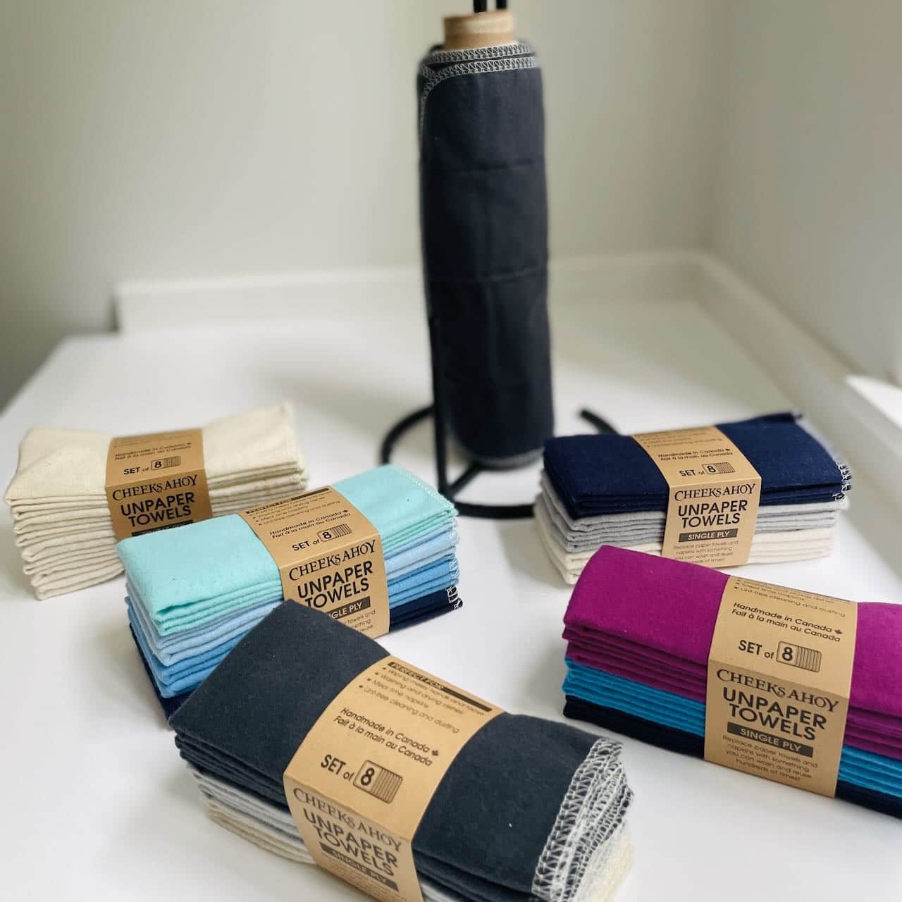 Replace paper towels and napkins with reusable paper towels. Sustainably handmade in Canada by Cheeks Ahoy using 100% cotton.